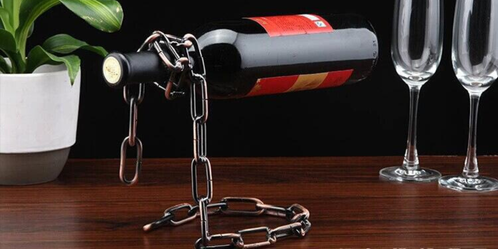 Stylishly suspends your wine bottle in mid-air with a magical floating chain design!